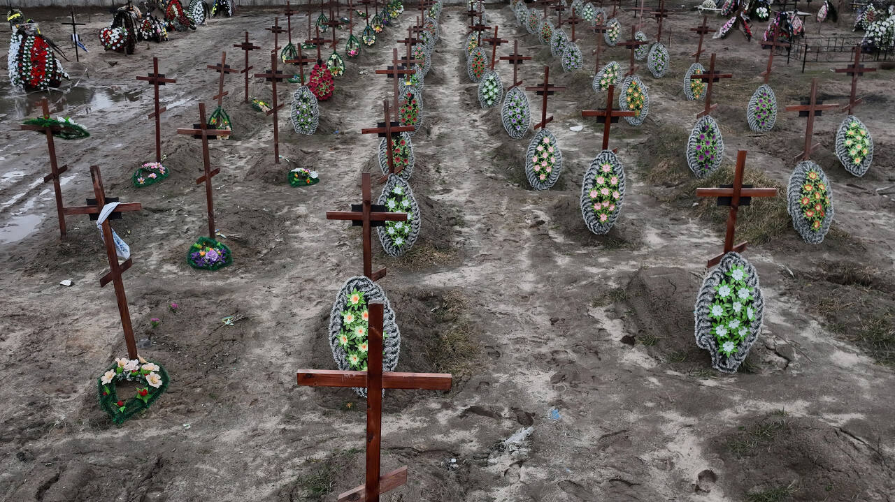 Many of those who died in the Russian massacre on Bucha, northern Ukraine, in March 2022 went unidentified. Unmarked graves fill Bucha's cemetery almost a year later. 2022년 3월 우크라이나 북부 부차에서 벌어진 러시아군의 학살로 사망한 사람들 중 상당수는 신원이 확인되지 않았습니다. 거의 1년이 지난 지금도 부차 공동묘지에는 이름없는 무덤이 가득합니다.