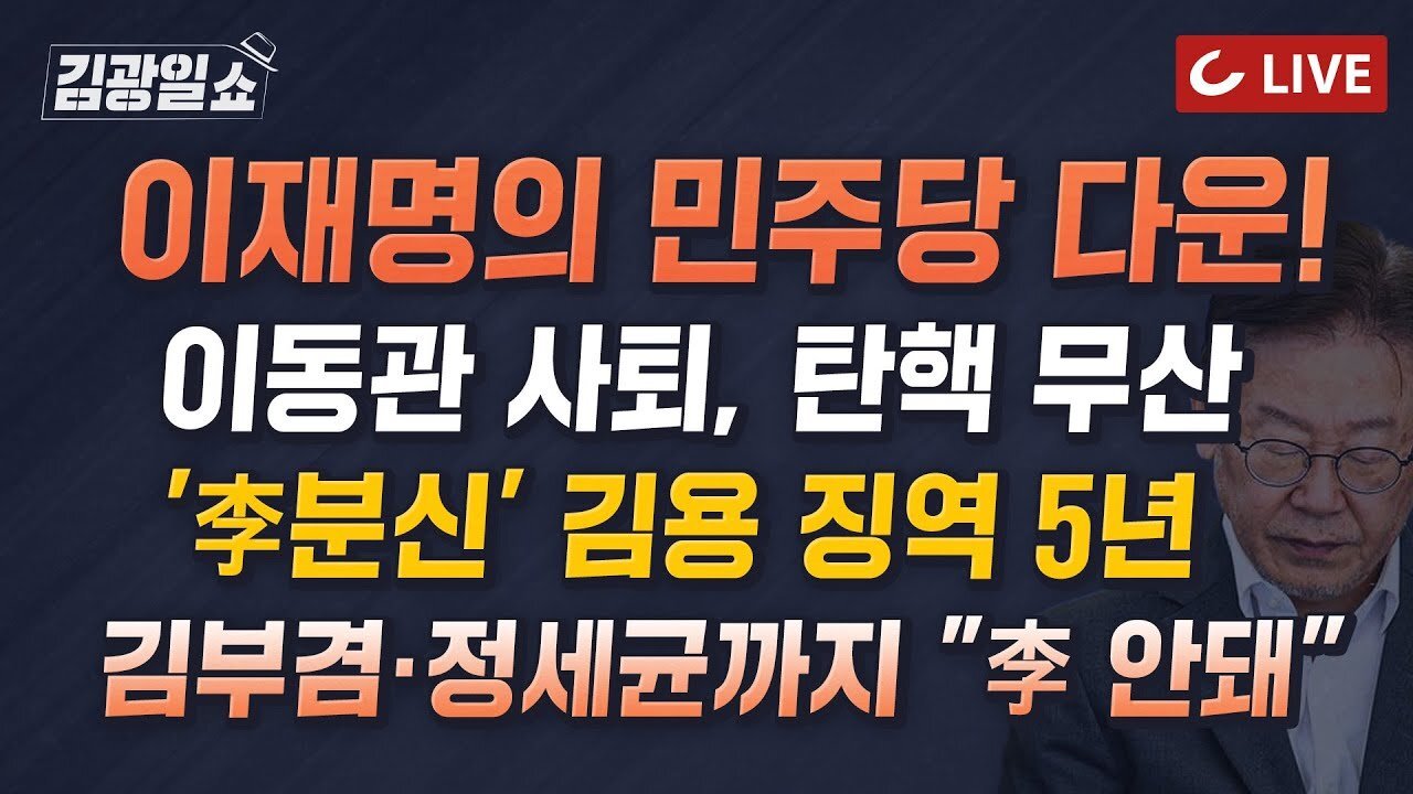 [🔴LIVE] 11시 김광일쇼 23.12.1 - 이동관 사퇴에 민주당 멘붕 | 김용 구속 "이재명 선거자금" | "'부글부글' 이낙연…정세균·김부겸도 문제의식 일치"