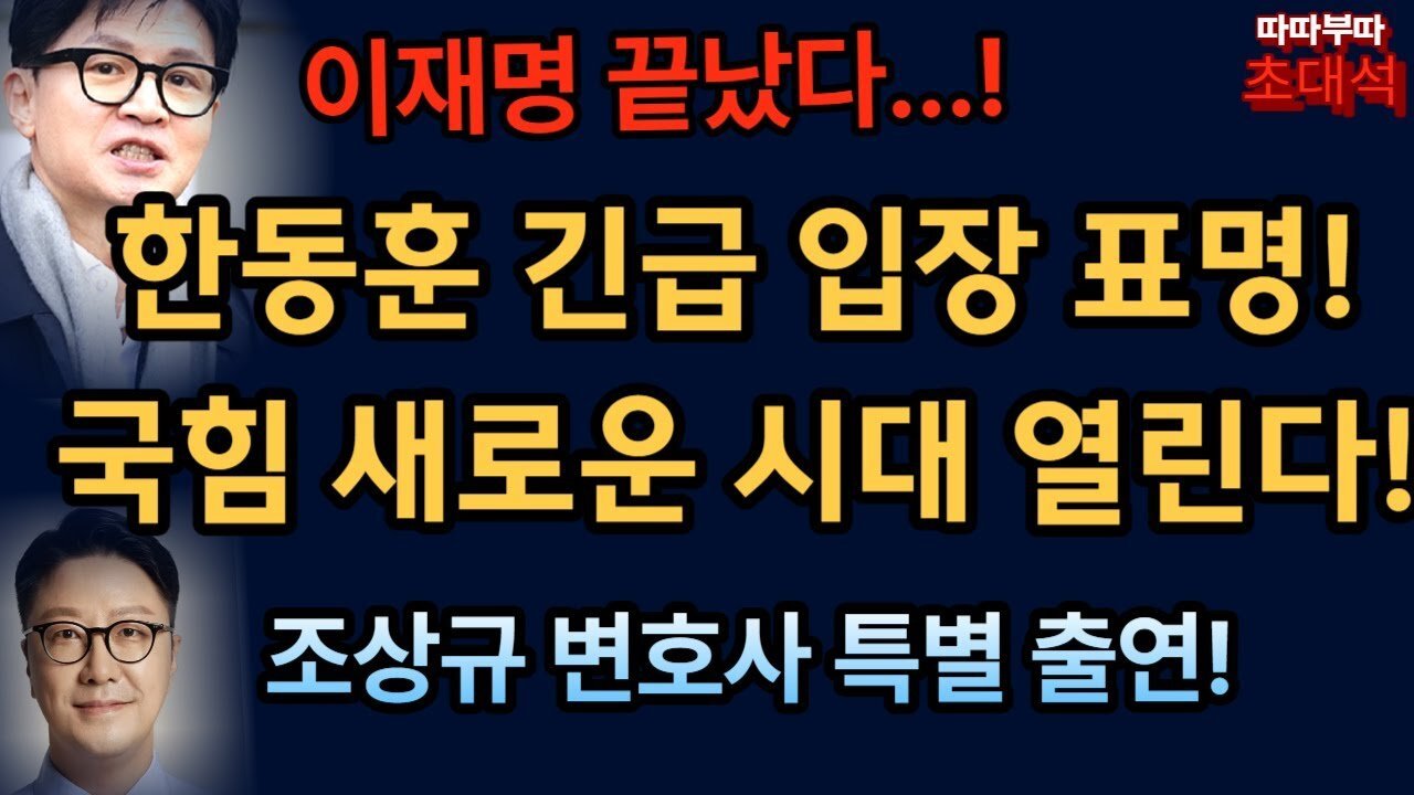 | 이재명 곧 끌려간다..민형배 아뿔싸! 한동훈 등판, 물갈이 공포 벌벌 떠는 영남중진들 ... 민주당, 明 불안 폭발!! “이재명 물러나라” 아우성! 김국성대표가 돌아왔다!직접들어봤습니다! (0) |